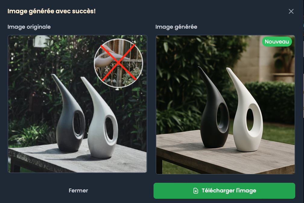 Il ne te reste plus qu'à soumettre cette image au générateur ELIA et d'indiquer dans la description de générer une image similaire avec les mêmes produits, en retirant l'élément barré d'une croix rouge.