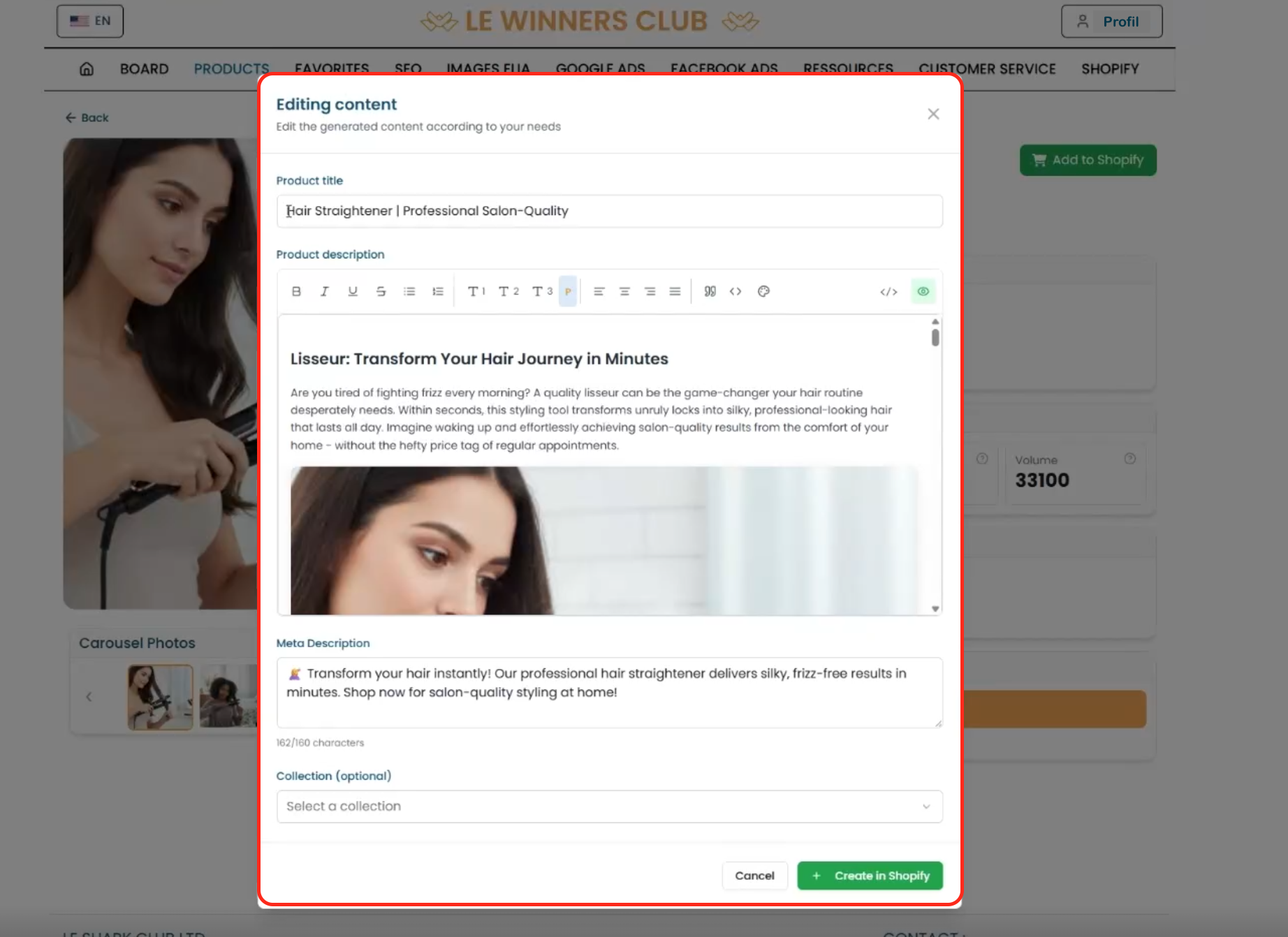Exemple : avec le bouton magique "And to Shopify" :